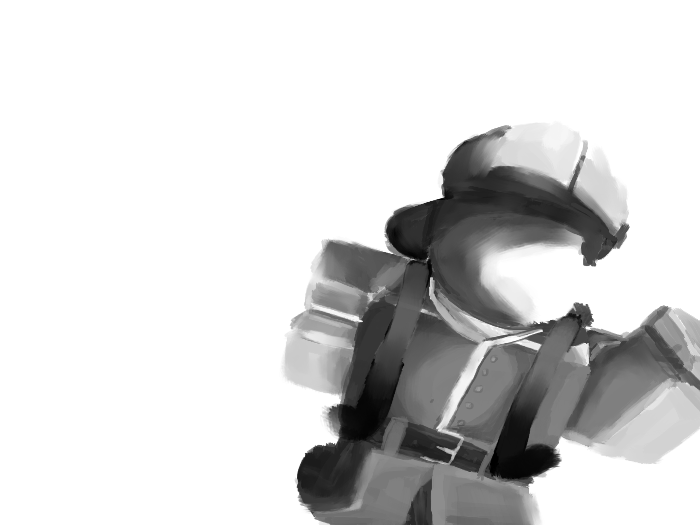 His veins looked like they would pop at any moment, he would give himself humanoid proportions to stand out from the stylistic blocky forms that stood alongside him, and he would stain the clothes given to him with a dark red, just to make people question who had been given the short end of the stick.